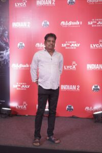 ‘பொதுவாக எப்போதும் என்னுடைய படங்கள் இது இப்படி நடந்தால், எப்படி இருக்கும் என்கிற கான்செப்டில் தான் இருக்கும். இந்தப்படமும் அந்த மாதிரி தான். இப்போதிருக்கும் நாட்டின் சூழ்நிலையில், இந்தியன் தாத்தா வந்தால் என்ன நடக்கும் என்பது தான் இப்படம். இப்படத்தில் மிகப்பெரிய உழைப்பு இருக்கிறது. அனைவரும் மிக அர்ப்பணிப்போடு உழைத்துள்ளனர். இந்தியன் படத்தைப் பொறுத்தவரை அதன் கதை தமிழ்நாட்டில் நடப்பதாக அமைக்கப்பட்டிருக்கும், ஆனால் இந்தியன் 2 கதை, கொஞ்சம் வெளியே சென்று, இந்தியா முழுக்க, எல்லா மாநிலங்களிலும் நடப்பதாக அமைக்கப்பட்டிருக்கிறது. இந்தக் கதையைப் பொறுத்த வரைக்கும், இதில் நிறைய கேரக்டர்கள் இருக்கிறது. இந்தியன் தாத்தா தவிர, நிறைய குடும்பங்கள் இந்த படத்தில் இருக்கிறது. இந்தியா முழுக்க இருக்கும் குடும்பங்கள் இந்தப் படத்தைப் பார்த்த பிறகு அவர்களை இந்தப்படம் கொஞ்சம் யோசிக்க வைக்கும் என நான் நம்புகிறேன். இந்தப் படம் மிகச் சிறப்பாக வர மிக முக்கியக் காரணம் கமல் சார் தான். பார்ட் 1 இல் கூட நாங்கள் அவருக்கு 40 நாள் தான் மேக்கப் போட்டு தான், ஷூட் செய்தோம். ஆனால் இந்தப் படத்தில் 70 நாட்கள் அவர் மேக்கப் போட்டு நடித்திருக்கிறார். ஒவ்வொரு நாளும் காலை 4 மணிக்கு வந்து, மூன்று மணி நேரம் மேக்கப் போட்டு ரெடியாக வேண்டும், சாப்பிட முடியாது தண்ணீர் மட்டும் தான் குடிக்க முடியும். மிகக் கஷ்டப்பட்டு, மிக அர்ப்பணிப்போடு இருப்பார். அவர் உழைப்பைப் பார்த்து எனக்குப் பிரமிப்பாக இருக்கும். ஷூட்டிங்கே முடிந்தாலும் அவர்தான் கடைசியாகப் போவார். அந்த மேக்கப் கலைப்பதற்கு 1 மணி நேரமாகும். முதல் படத்தில் அவர் மேக்கப் போட்டு வந்து நின்ற போது ஒரு சிலிர்ப்பு வந்தது, இப்போது இந்த படத்தில் மீண்டும் அவர் மேக்கப் போட்டு வந்த போது, அதே சிலிர்ப்பு வந்தது. அவரை ஷீட்டில் பார்க்கும்போது கமல் சார் என்றே தோன்றாது, ஏதோ இந்தியன் தாத்தா நம்முடனே இருக்கிறார் என்பது போல் தான் தோன்றும். அவர் இந்தியன் தாத்தாவாக தான் வாழ்ந்திருக்கிறார். இந்தியன் பார்ட் 1 வந்த போது, பிராஸ்தடிக் மேக்கப் அந்த அளவு வளரவில்லை, அதனால் அது ரொம்ப திக்காக இருக்கும். ஆனால் இந்தப் படத்தில் அந்த நிறுவனத்திடம் சொல்லி மேக்கப் தின்னாக இருக்க வேண்டும் எனக்கேட்டு போட வைத்தோம். அதனால் நீங்கள் கமல் சார் நடிப்பை இன்னும் நன்றாகப் பார்க்கலாம். ஒரு சீன் 4 நாள் எடுத்தோம். கயிற்றில் தொங்கி கொண்டு, வேறு மொழி பேசி, கையில் வரைந்து கொண்டு நடிக்க வேண்டும். உலகில் யாராலும் முடியாது ஆனால் கமல் சார் அதைச் செய்துள்ளார். இன்னும் பல காட்சிகள் சொல்லிக்கொண்டே போகலாம். கமல் சார் உங்களுடன் பணிபுரிந்தது மகிழ்ச்சி. அன